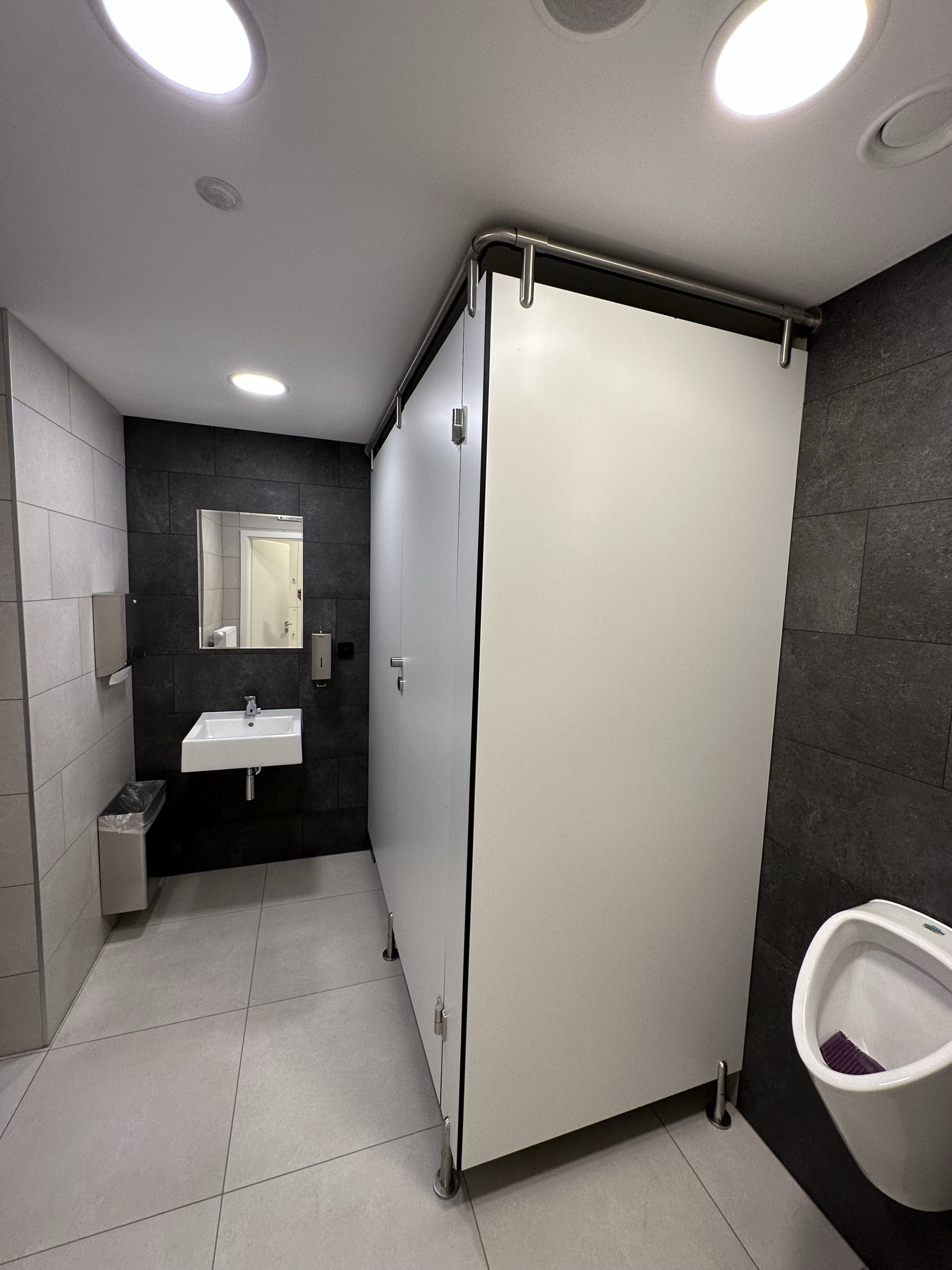 V rámci projektu Palác Karlín jsme realizovali truhlářské vybavení společných prostor na míru. Součástí dodávky byly elegantní a funkční prvky pro toalety, šatny a další zázemí, vše s důrazem na kvalitní materiály, precizní zpracování a jednotný design. Naším cílem bylo vytvořit reprezentativní prostředí, které odpovídá vysokým standardům budovy a poskytuje komfort uživatelům i návštěvníkům.